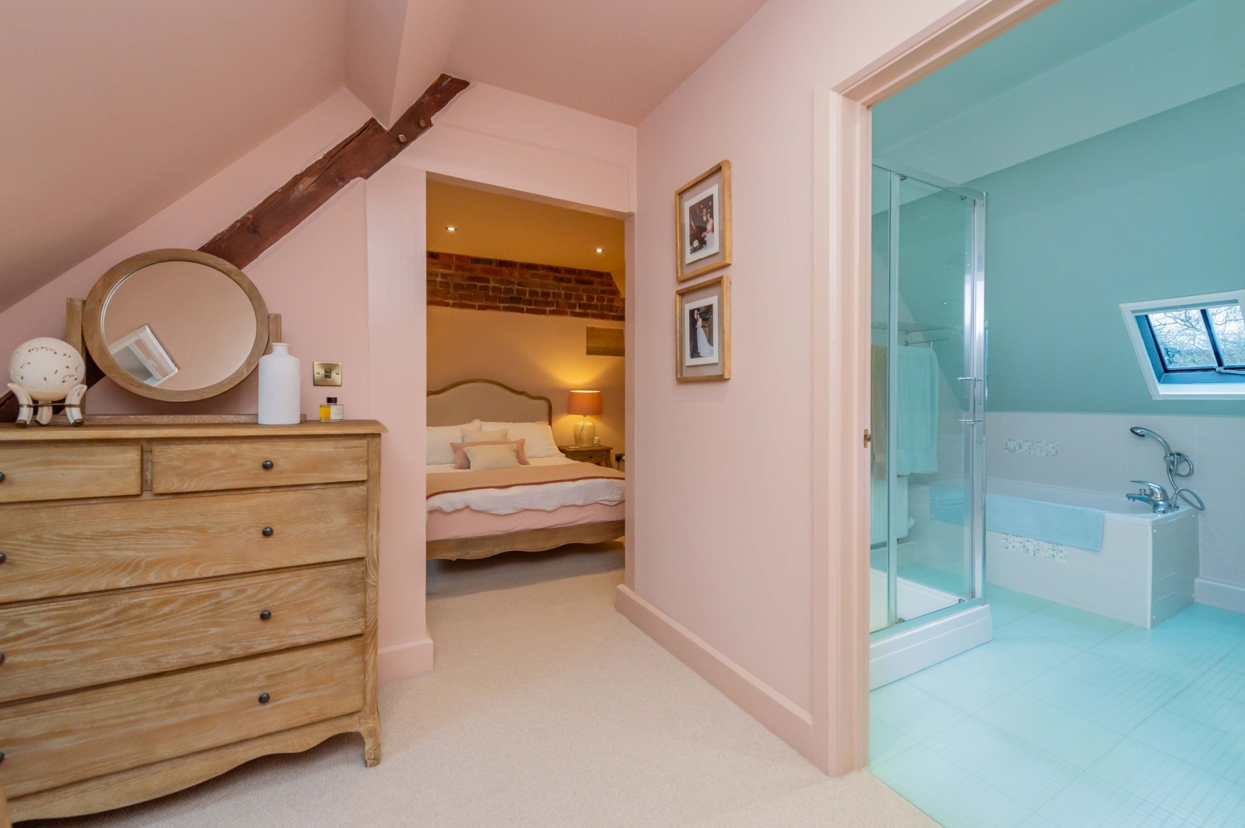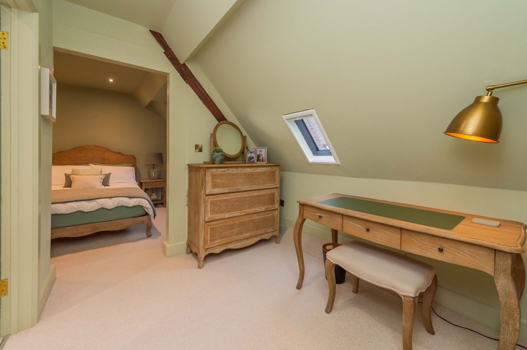 This stunning Grade II Listed barn conversion offers a truly exceptional living experience, seamlessly blending its rich historical character with a comprehensive, loving upgrade by the current owners. Presented in immaculate condition, the property has been thoughtfully modernised while retaining a wealth of its original and impressive features, resulting in characterful, light-filled, and open living spaces. A highly valuable feature is the property's flexibility: the current bathroom serving Bed 2 was previously the third bedroom (Bed 3), and converting it back to a 3-bedroom configuration would be straightforward for future owners.