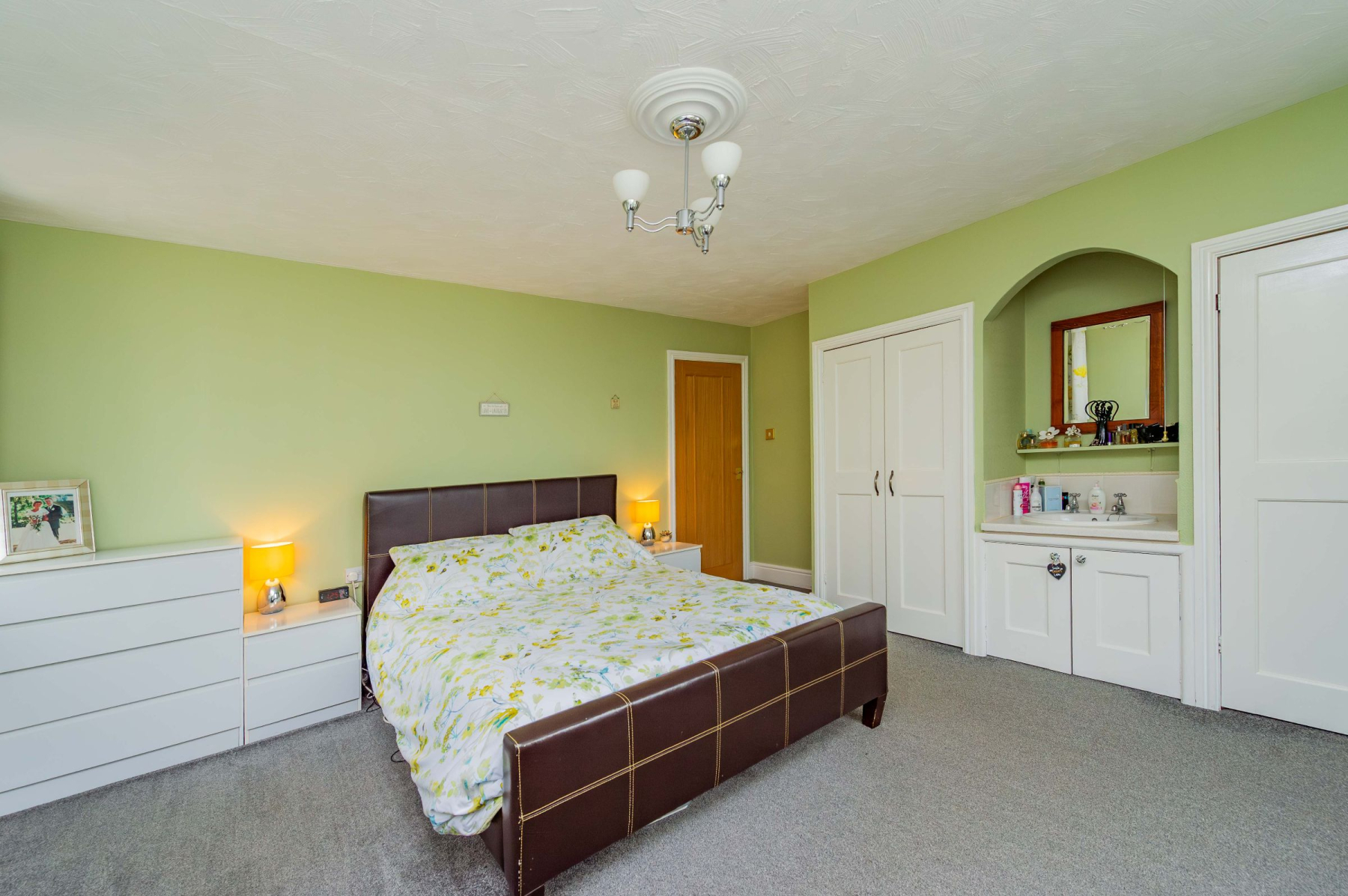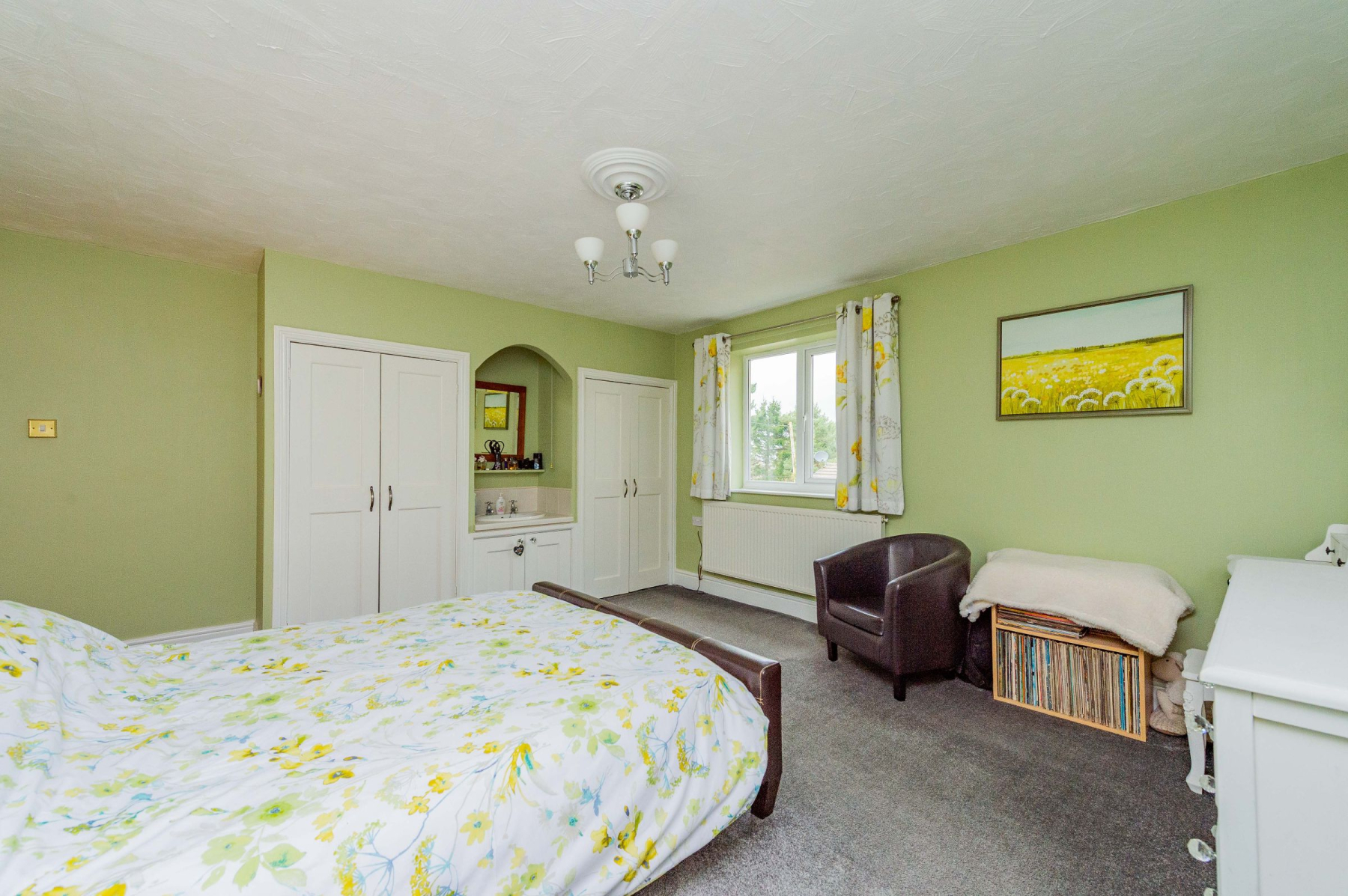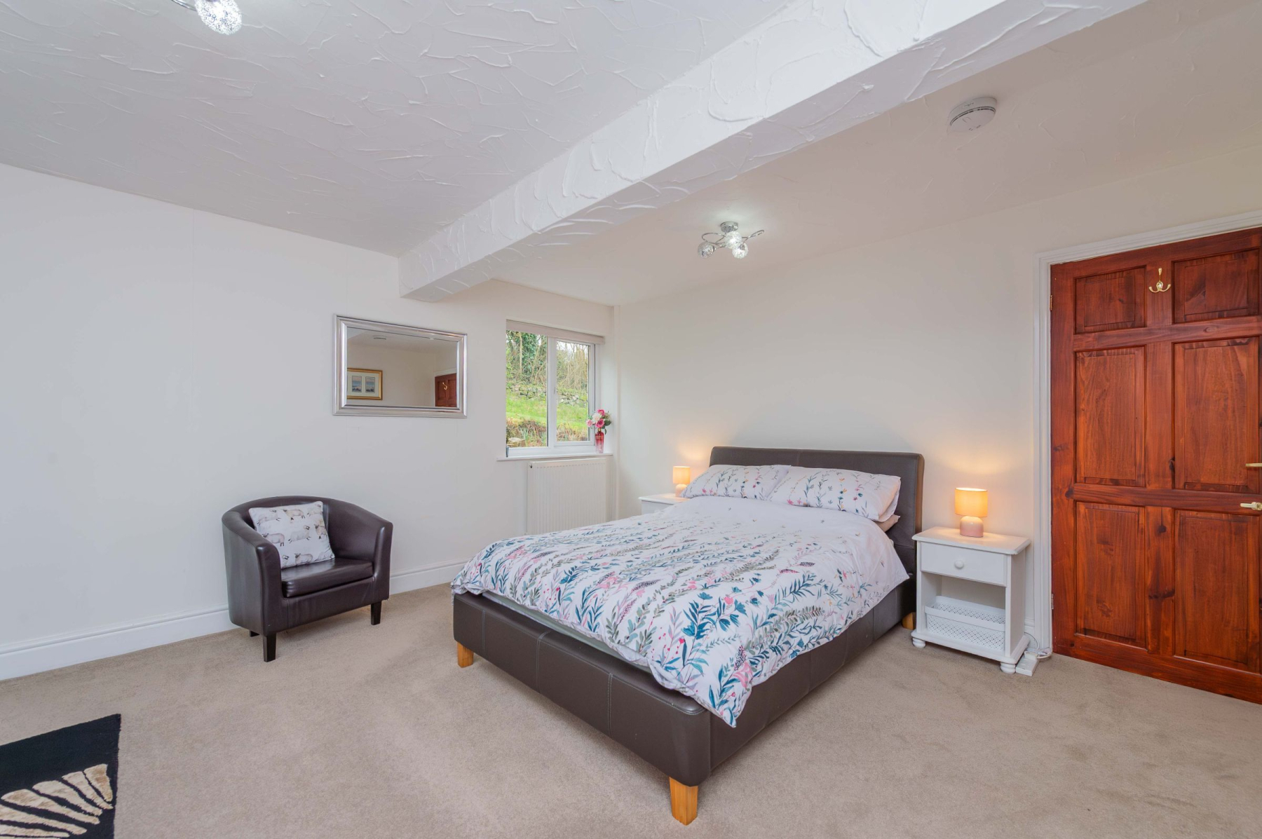 The sleeping quarters in the main house are designed for rest and organisation. Bedroom One is a voluminous double, featuring full-width fitted wardrobes and a central sink, with a side window that captures a stunning framed view of the local landscape. Bedroom Two offers extensive storage and access to a large airing cupboard. These rooms are served by a contemporary shower room, where a walk-in shower and a vanity sink with an illuminating mirror provide a spa-like feel. The annexe offers a seamless extension; its primary bedroom is equipped with a stainless steel sink and storage, making it a perfect kitchenette for guests or a long-term relative, while the dual-aspect windows fill the space with natural light.
