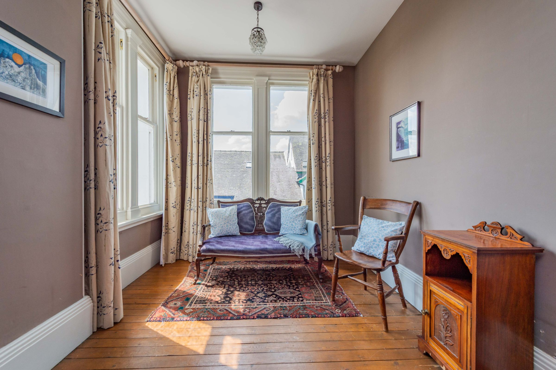 A wealth of character is evident throughout this top floor, with exposed period beams, a further two wood-burning stoves, and truly incredible, far-reaching views across the charming town of Bishop's Castle and onwards towards the majestic Long Mynd.
