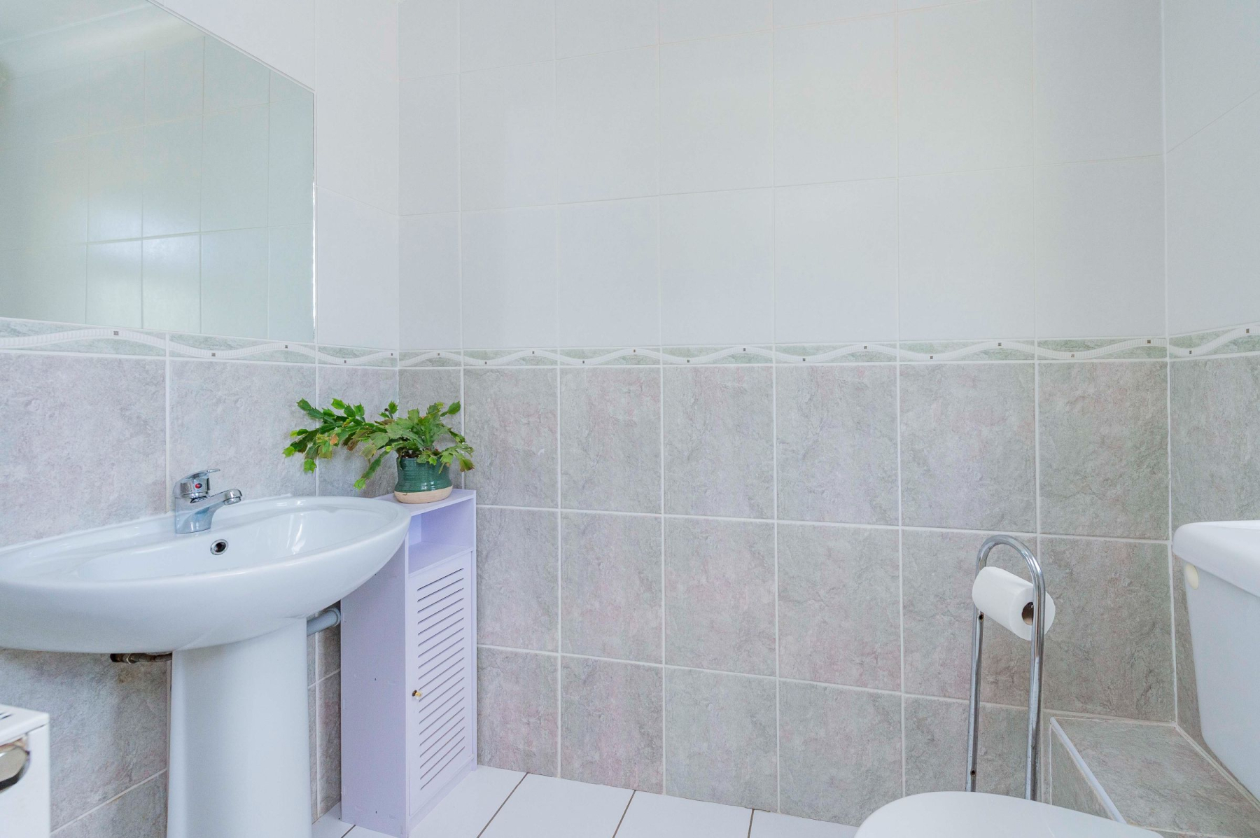 Beyond the kitchen, a private hallway leads to the sleeping quarters. You'll find two generous double bedrooms and a single bedroom, all designed for comfort and tranquillity. A sleek, neutral-toned bathroom completes this wing, featuring a corner shower, a panelled bath, and tiled walls and flooring.