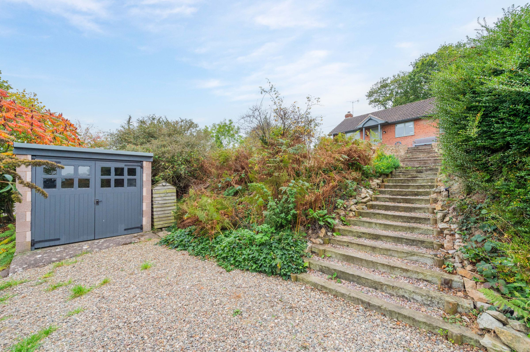 High Bank enjoys an enviable elevated setting, offering an incredible level of seclusion and providing some of the finest views Shropshire has to offer. Approached from Top Road, gates open onto a generous gravel driveway providing ample parking and leading to a detached Garage with double doors and a side window.