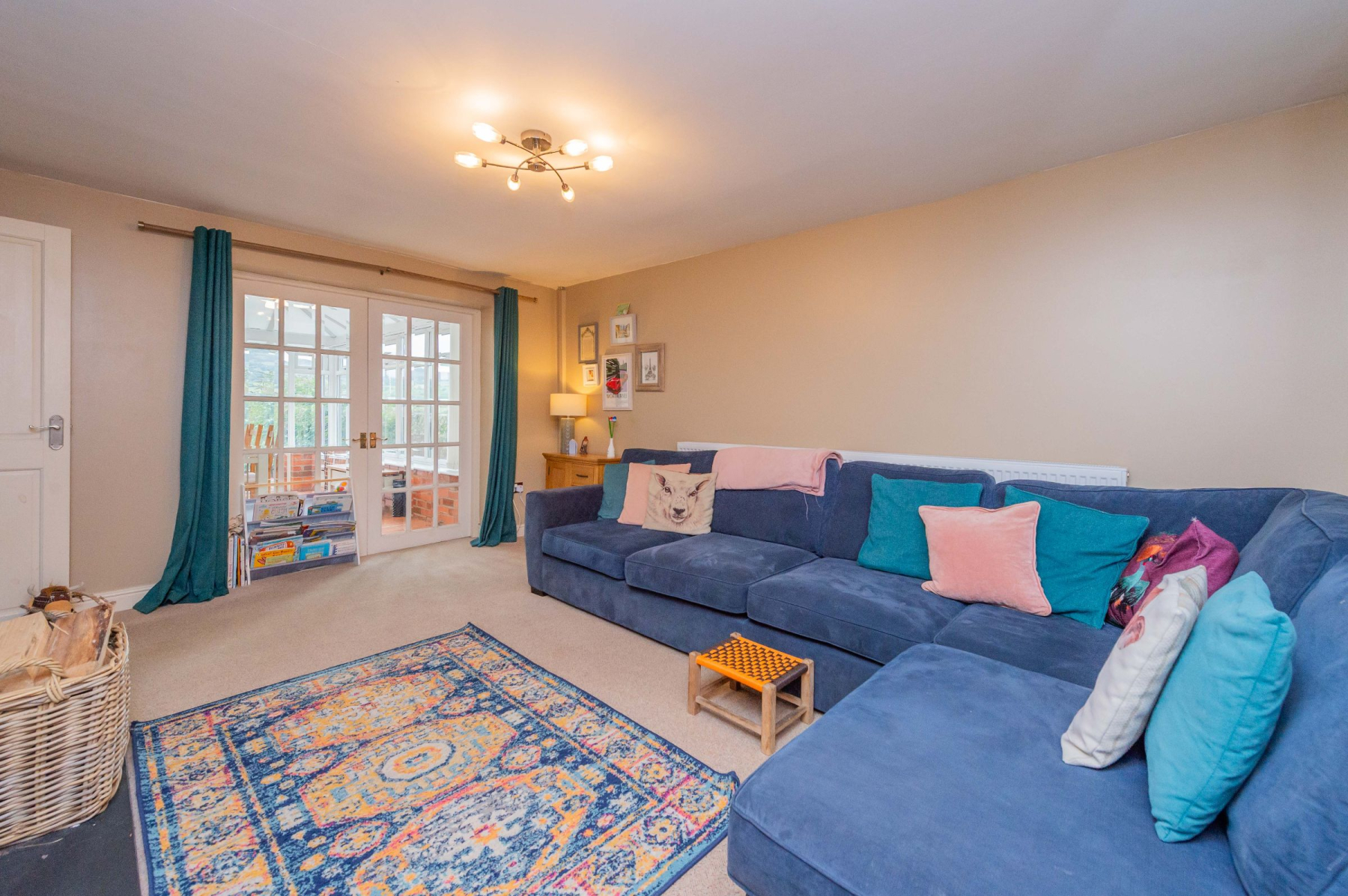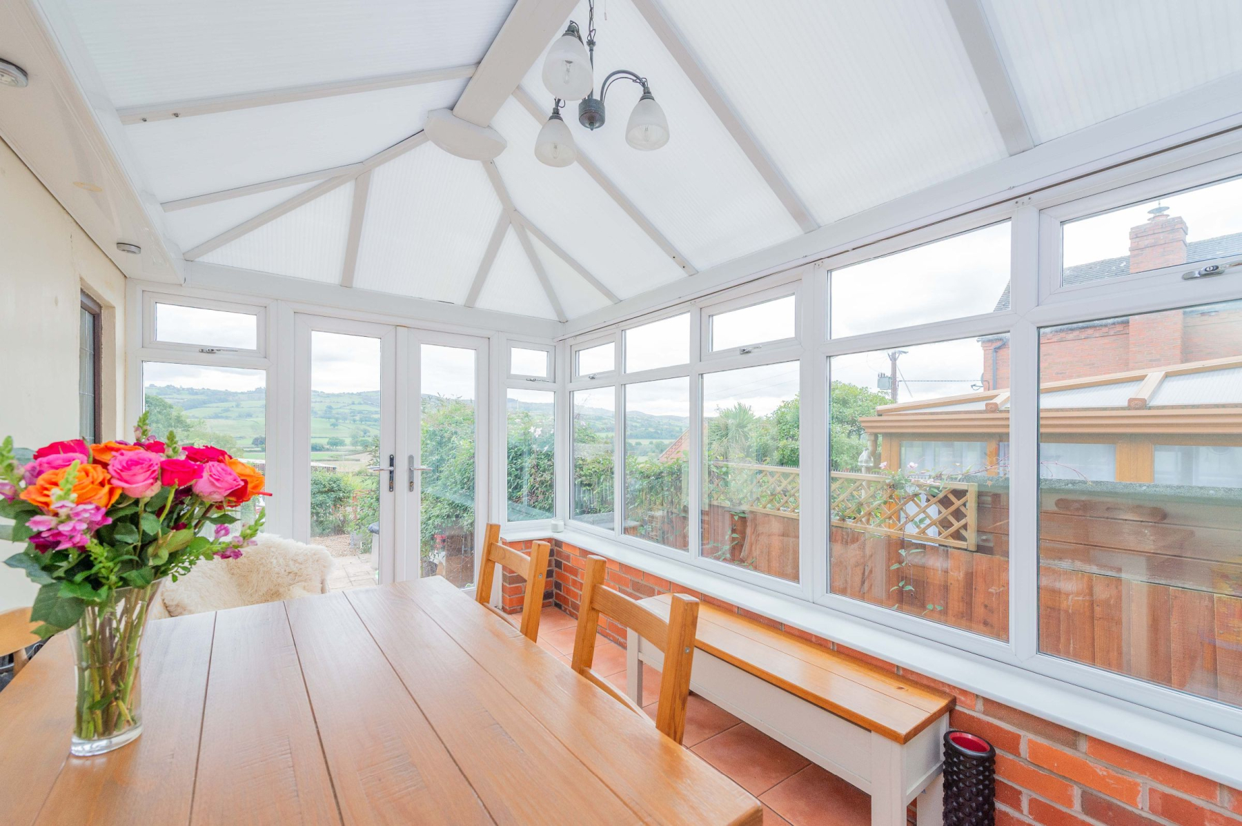 From the kitchen, a door leads to a cosy, carpeted lounge, a perfect spot to relax in front of the warm log-burning stove on a chilly evening. Double doors from the lounge open into a magnificent conservatory. This space provides a dedicated dining area with truly remarkable, panoramic views over the land and the stunning countryside beyond. Further double doors from the conservatory lead directly outside, with steps down to a lovely terrace area, perfect for al fresco dining.